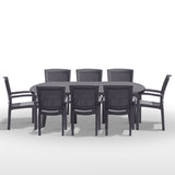 Nothing says Summer, outdoor dining and patio relaxing like rattan furniture. Natural rattan only lasts a year or two before deteriorating. These poly rattan chairs and tables replicate natural wicker rattan with breathable backs. This feature keeps your back cooler when sitting outside on a hot day. There are 4 colors - white, anthracite (dark grey), jute and mocha (brown). These chairs were designed and manufactured in Italy for use around salt water without the risk of rusting.